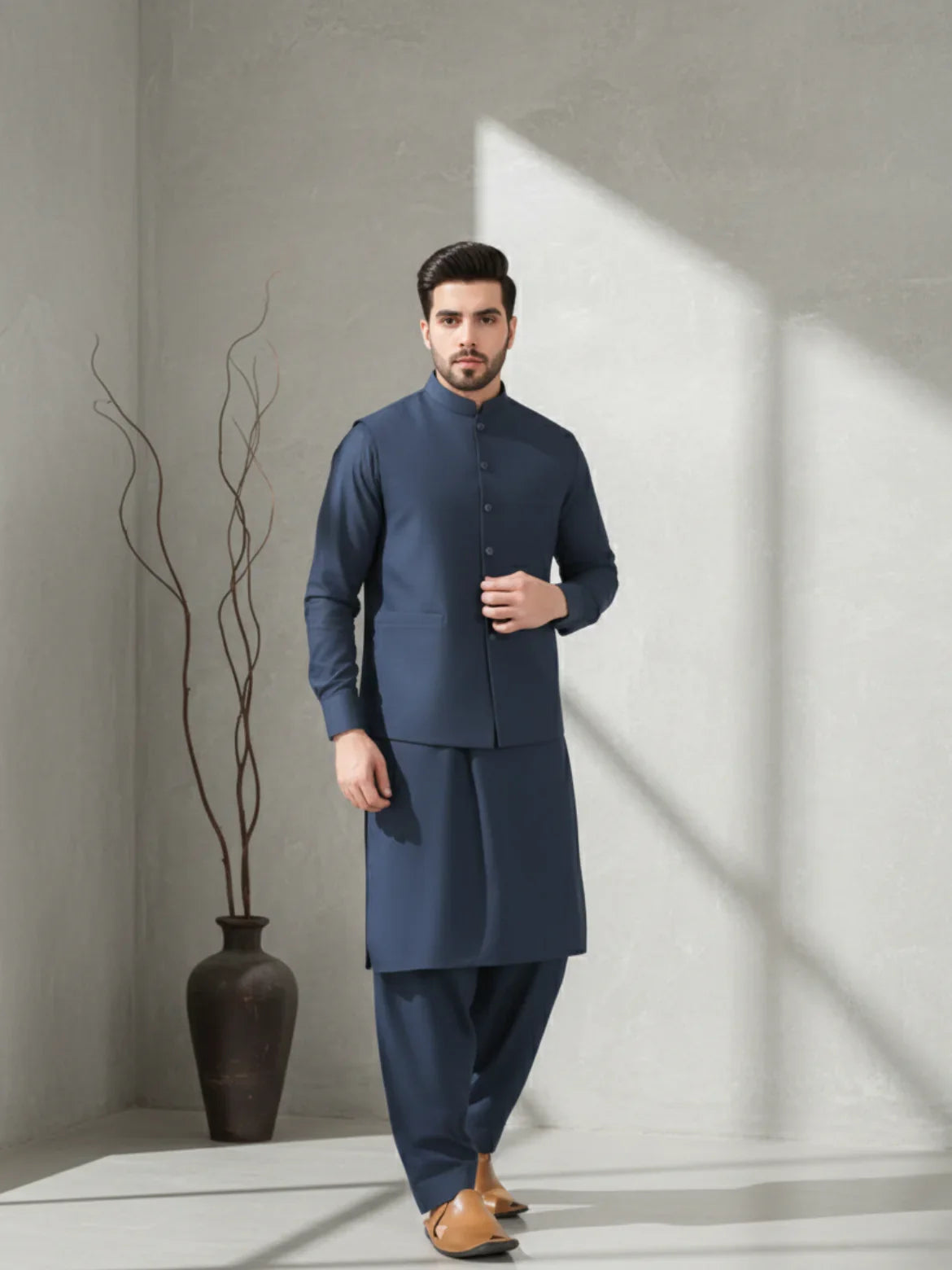 Introducing "Martial Art", a medium weight blended fabric by Rahaa by Nini, designed for light to moderate winter conditions. This winter fabric for men strikes the perfect balance between durability and softness. Crafted from premium blended fibers, it features a smooth and soft finish, enhancing both comfort and wearability—making it an excellent choice for various fashion needs.
